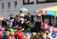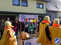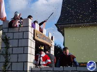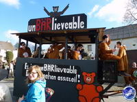 Es tummelt sich allerhand Getier in der Freiluftmanege - zum Beispiel verrückte Bären, die lahmen Enten des Leichtathletikvereins Spiridon Hochwald oder ein furchteinflößender Pavian, der sich doch glatt eine adrette Krümelmonster-Dame schnappt und in den Arm nimmt. Fünf Musikvereine machen ordentlich Ramba-Zamba und treiben mit bekannten Gassenhauern das Stimmungsbarometer nach oben. Aus Grimburg und aus Hentern kommen alte Rittersleut. Die Fastnachter aus Heddert suchen keine Frau, dafür aber einen Wirt. Denn "Heddert ohne Kneipe ist wie die WM ohne Ball", klagen sie.
