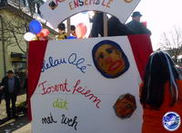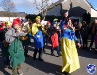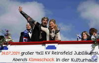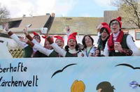 Das politische Geschehen spielt bei den Motivwagen weder auf der großen Bühne in Berlin noch auf der lokalen Ebene eine Rolle. Zwar gibt es einen kleinen Wagen, auf dem sich doch tatsächlich ein Windrad dreht. Doch geht es der Gruppe um Christa Petry nicht um die aktuell so kontroverse Frage, welche neuen Windkraftstandorte es in der VG Kell geben soll. Ganz harmlos hat diese Truppe die Mühle nachgebaut, die Ausgangspunkt für das Märchen vom gestiefelten Kater ist. Denn als diese Figur haben sich alle in der Gruppe verkleidet.