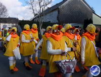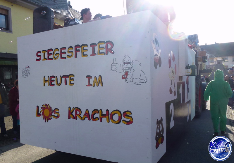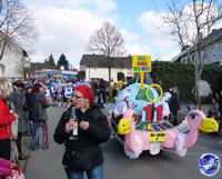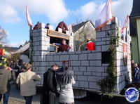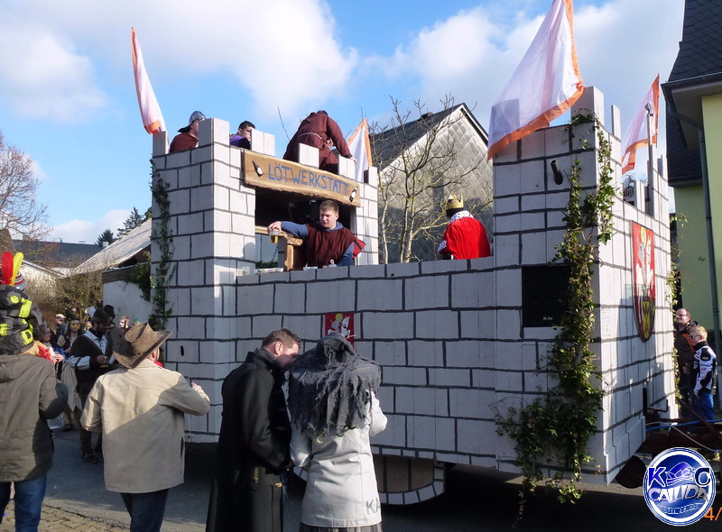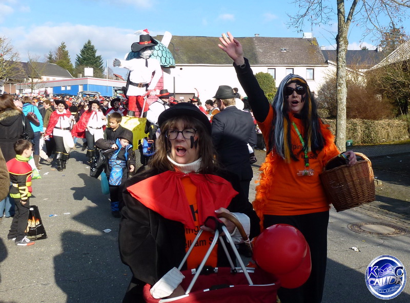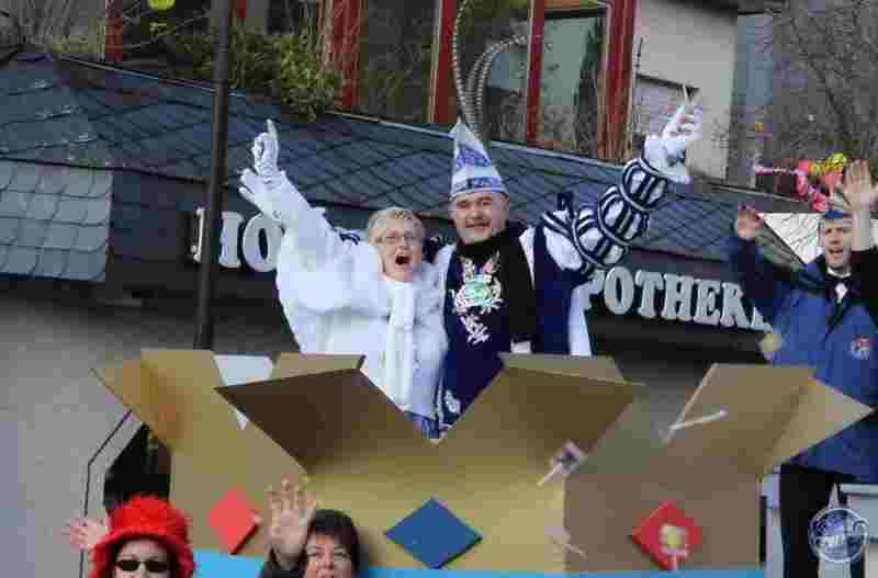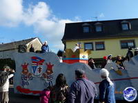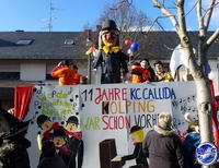 Zum Abschluss und als krönender Höhepunkt schlängelt sich schließlich der imposante Prinzenwagen des KCC durch die Straßen. Für seine Besatzung ist wie für alle anderen Jecken mit dem Abbiegen in die Schulstraße aber noch lange nicht Schluss. In der Turnhalle geht die Feier am Sonntag noch stundenlang feucht-fröhlich weiter.