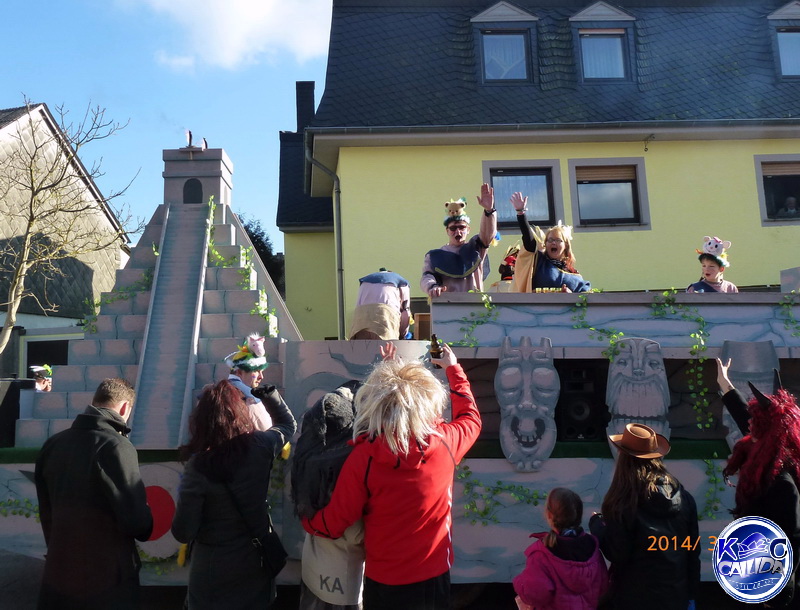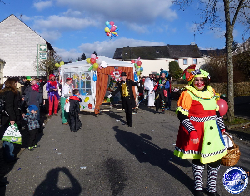 Kell am See. "Wahnsinn. So etwas hatten wir hier noch nie!" So wie Ortsbürgermeister Markus Lehnen wird es am Sonntag vielen Leuten gegangen sein, die bei strahlendem Sonnenschein einen Abstecher nach Kell gemacht und dort ein sehenswertes Spektakel erlebt haben. Der heimische Karnevalclub Callida (KCC) feiert 2014 ein närrisches Jubiläum. Als Nachfolger einer früheren Arbeitsgemeinschaft organisiert der KCC seit elf Jahren den Karneval in Kell. Also macht die Truppe um den Vorsitzenden Norbert Stüber, den ehrwürdigen Elferrat sowie das aktuelle Prinzenpaar Margit und Karl-Heinz in dieser Session besonders großen Zirkus - getreu dem offiziellen Motto: "Jubiläum in Kell am See, elf Jahre Zirkus im KCC!"